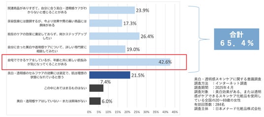 ■美白・透明感ケアの悩み(n=284、複数回答 %)