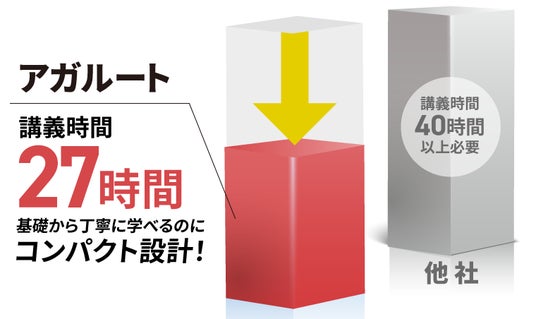 他社の講座では40時間以上必要なため、圧倒的にコンパクトなつくりになっています。