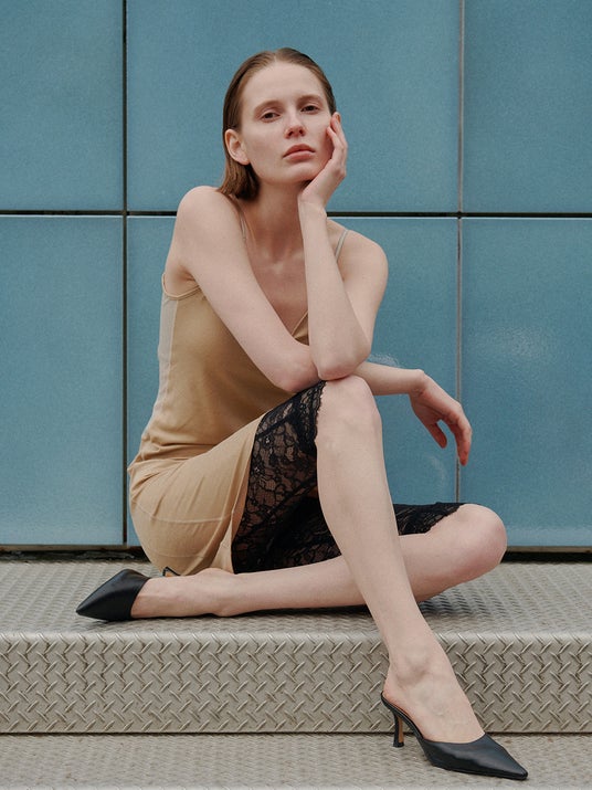 膝上丈のワンピースタイプで、夏の軽やかなドレスのペチコートとしても最適な一着。上見頃のサイドにはシアー素材の切り替えを施し、さりげない抜け感をプラスしています。