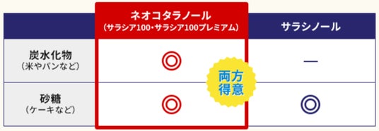 サラシアの中でもネオコタラノールは、砂糖だけでなく、日本人がよく食べる米やパンなどの炭水化物の両方に対して糖質を体内に吸収しにくくする効果があります。真に血糖値対策に効果があるサプリメントの実現を目指し、近畿大学と10年以上共同研究を行った結果、「ネオコタラノール」にたどり着きました。