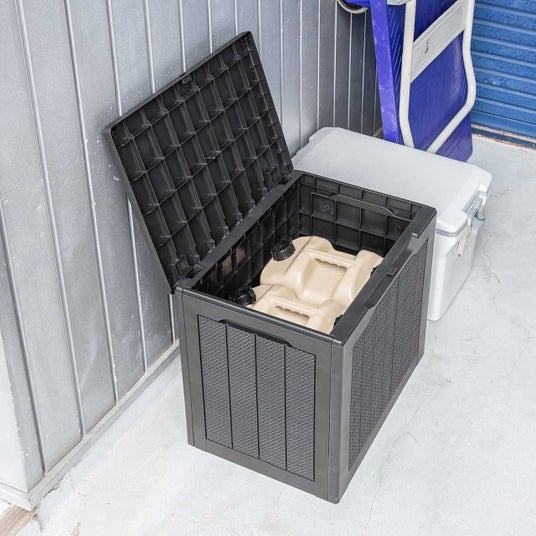 この収納コンテナは、屋外収納にとどまらず、置き配ボックスやゴミの一時保管ボックスとしても活用できます。さらに18L灯油タンクを2個収納できるサイズ感で、日用品や季節用品の保管にも便利です。ひとつ置くだけで、用途に合わせて柔軟に使い分けられるのが大きな魅力。暮らしの中の“置き場所に困る”を、スマートに解決してくれます。