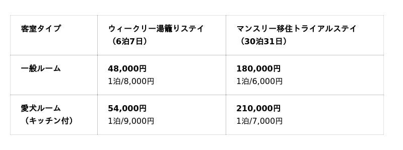 キッチン付きの愛犬ルームもご用意。伊豆での「お試し暮らし」が1泊換算6,000円~!
