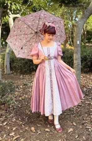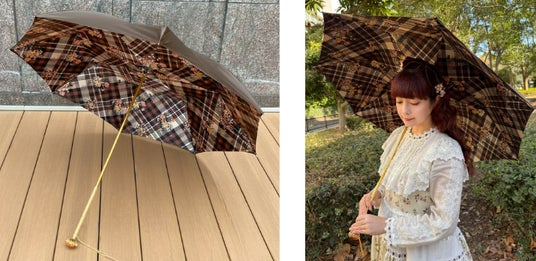 クラシカルなブラウンの色合いで、クラシカルロリータとの相性バッチリです。チェックと花柄の組み合わせが上品です。