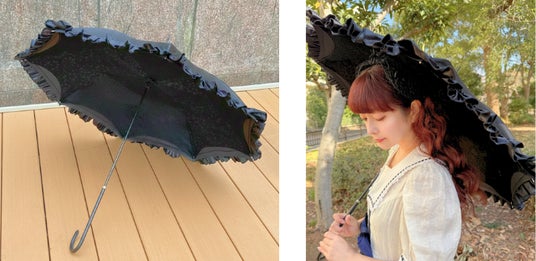 外側には存在感のあるクラシカルなフリル、内側にイタリアンレースを丁寧に縫い合わせた特別なパラソル。
