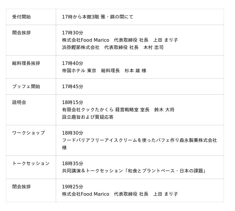 浜弥鰹節株式会社は、78年の歴史を持つ鰹節の老舗が、和食の未来のために植物性100%・動物性原料・着色料・香料不使用のかつお風味だし「MAGIDASHI」を開発した会社で、【のあれキッチン】の理念に共感を頂き今回のフードバリアフリーブッフェとアライアンス説明会の開催に至りました。