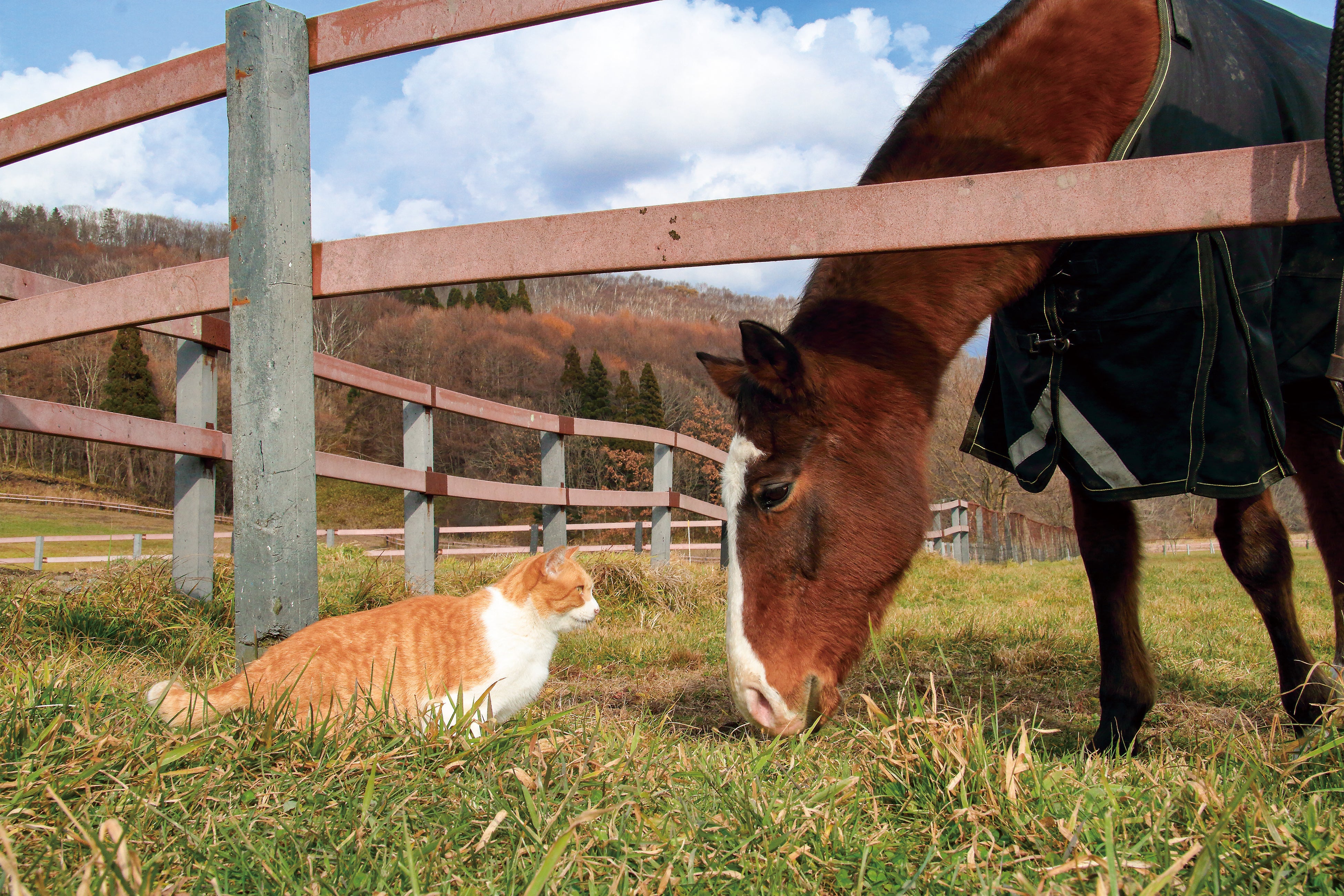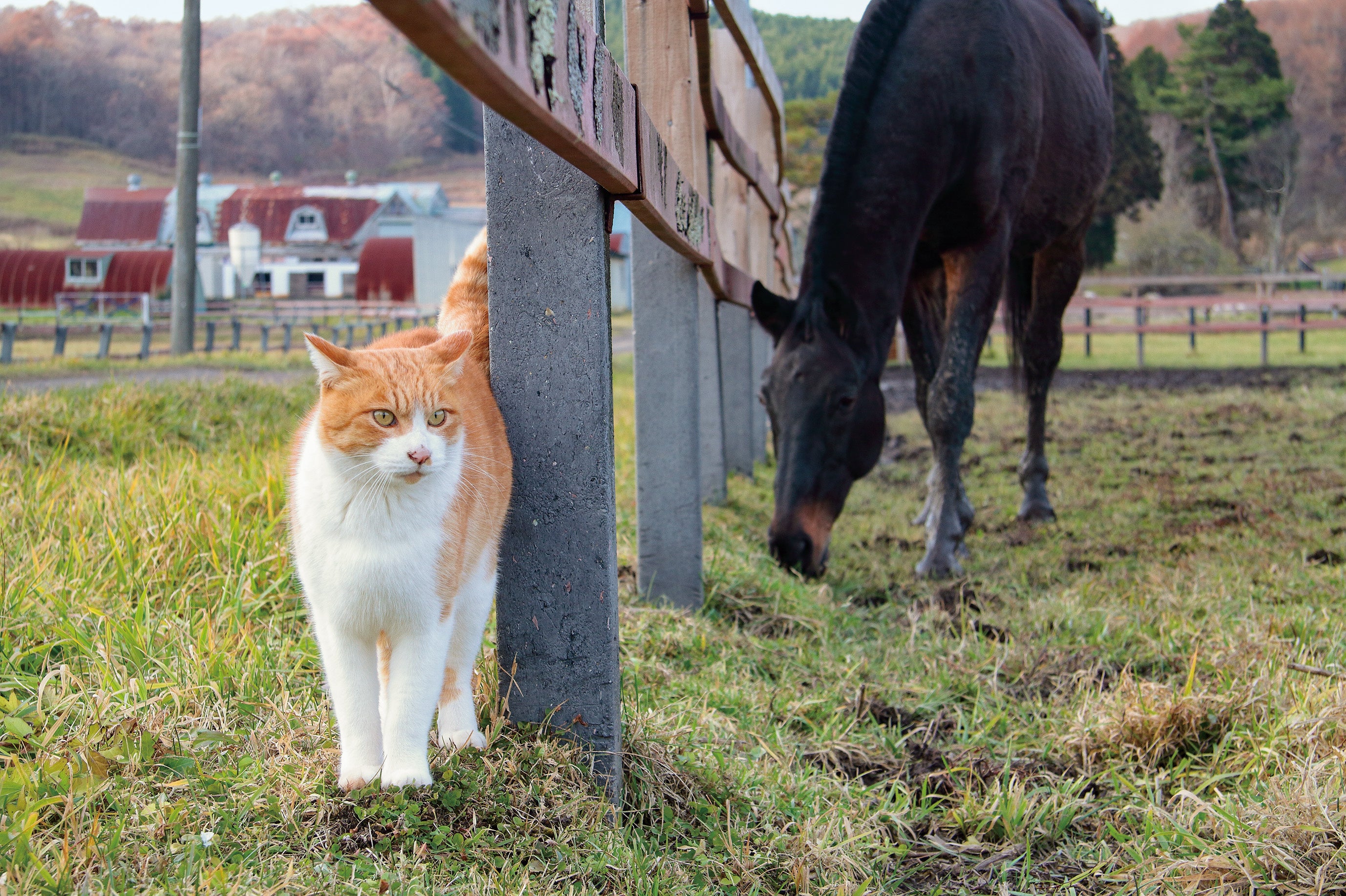 この牧場のボスは、2020年7月の牧場開場直後に突如現れたオス猫・メト。メトは、自分の何倍も大きい馬たちに臆することなく牧場での暮らしを楽しみ、馬たちと友情をはぐくんでいます。
