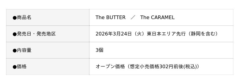 株式会社ロッテ(東京都新宿区、代表取締役社長執行役員:中島英樹、以下ロッテ)は、13年ぶりの新ビスケットブランド「Theシリーズ」より、フィナンシェの「The BUTTER」とマドレーヌの「The CARAMEL」を、2026年3月24日(火)より東日本エリア(静岡を含む)で先行発売いたします。
