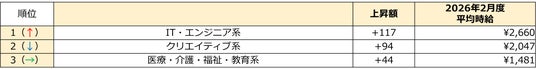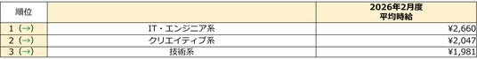 2月度の職種別/時給額ランキング