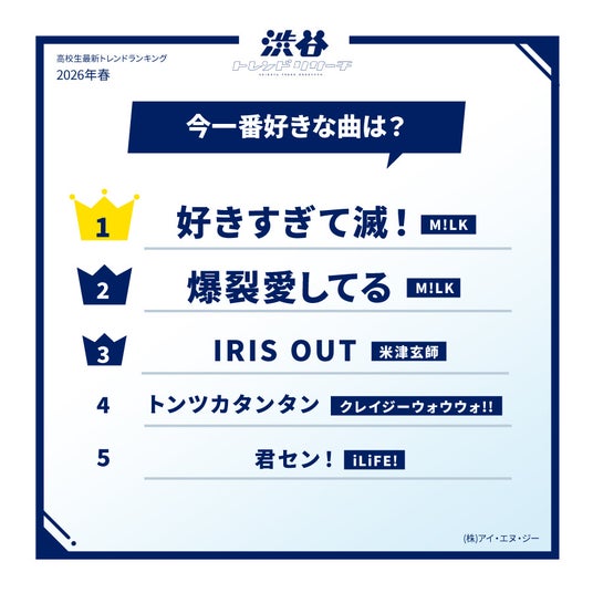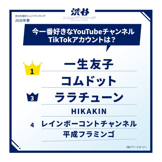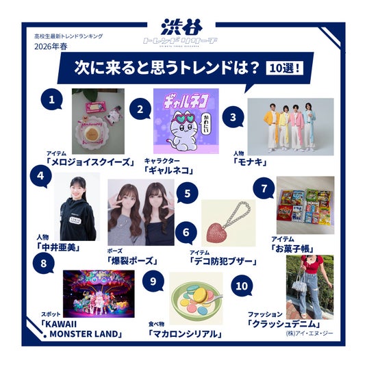 【2026年春!高校生最新トレンドランキング】 Z世代の流行語や話題の食べ物・好きなアーティストなど全15項目を発表!ネクストトレンドでは入選コメントも掲載!渋谷トレンドリサーチ2026年春の特大号