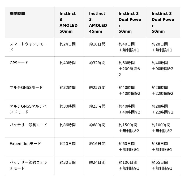 ・Dual PowerモデルはGarminの新しい第3世代ソーラー充電技術の採用で、充電効率・吸収率が大