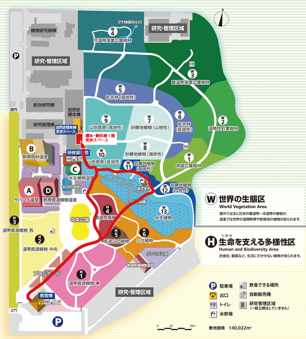 ※「標本・資料棟1階見学スペース」は、筑波実験植物園よりお入りいただけます。