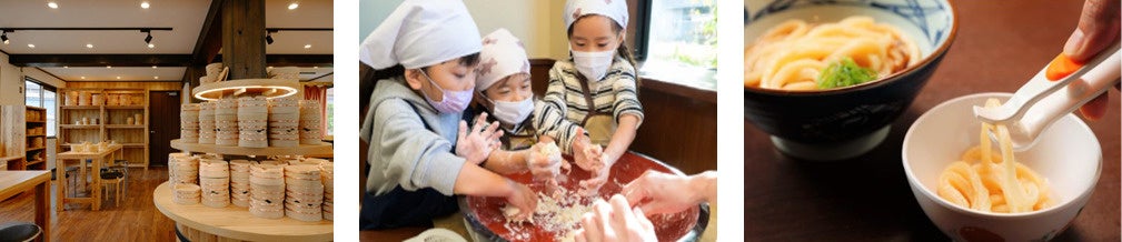 また、こども達に食の楽しさや尊さを伝える「食育活動」にも積極的に取り組んでいます。「こどもうどん教室」では、うどんを粉と塩と水を手で混ぜるところから体験でき、キッチンカーを用いての出張教室も日本中で実施をしています。そして、環境面ではプラスチック使用量の削減にも取り組んでいます。店内では繰り返し使用可能な食器の活用や、テイクアウト商品のカトラリーやビニール袋へのバイオプラスチック配合など、石油由来素材の使用削減を進めています。