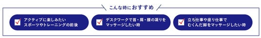 筋肉をほぐせます*⁵。体温ですっと溶けて肌になじみ、べたつかないため、シーンを選ばずに使いやすいのもポイントです。