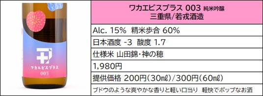 ワカエビスプラス 003 純米吟醸 三重県/若戎酒造