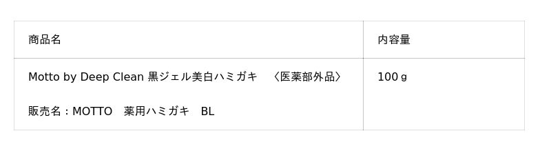 『Motto by Deep Clean 黒ジェル美白ハミガキ』<医薬部外品> 販売名:MOTTO 薬用ハミガキ BL