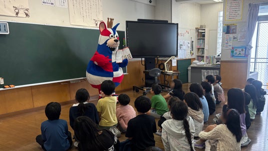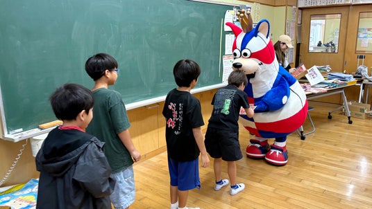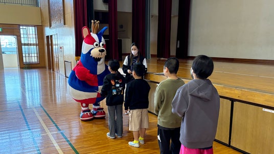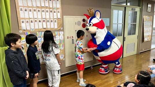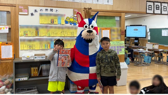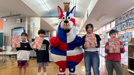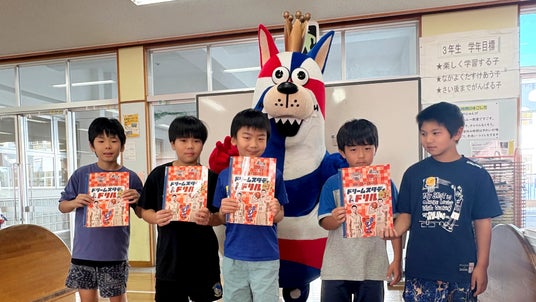 ゴーディーの訪問に驚く様子も見られましたが、ドリルや、付録の「岸本隆一選手のサイン入りポスター」や「ゴーディーのクラフト貯金箱」を嬉しそうに受け取っていました。また、子どもたちからは、「このドリルを使って、勉強頑張ります。」「沖縄市の子どもたちのために準備してくれてありがとうございます。」といった声も寄せられました。教職員からも「しばらくはこの話題で学校が盛り上がりそうです。」「春休みの良い宿題になります。」といったお言葉をいただき、子どもたちだけでなく、教職員の皆さまにも喜んでいただく機会となりました。