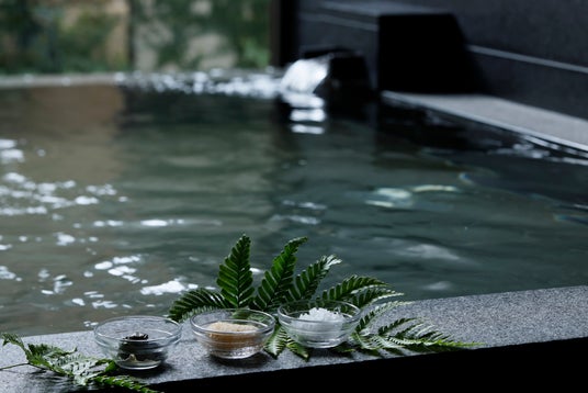 敷地内の地下約1,000mから湧き上がる天然温泉「京都二条温泉」を、100平方メートル 超の贅沢な「プライベート温泉」にて存分にお楽しみいただけます。同空間に備わるスチームルームでは、日本古来のよもぎを用いたハーバルスチームで発汗をサポート。酒粕や薄荷が香る2種のスクラブやクレイパックで全身をすっきりと整えます。