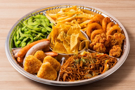 【コース内容】枝豆・トルティーヤ・唐揚げ・オニオンリング・フライドポテト・ソーセージ・焼きおにぎり・焼きそば