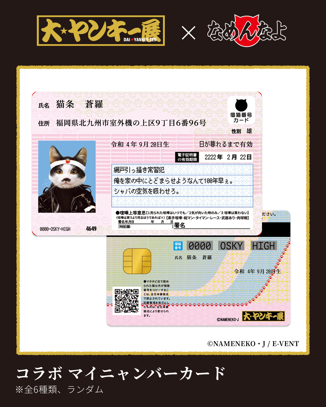 なめ猫コラボではマイナンバーカードならぬ、マイ”ニャンバー”カードを発売。昭和に大人気だった「なめ猫免許証の”令和版”だ」と買い求める方が続出して完売に。