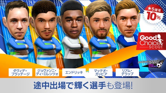 今回の“グッドチョイスSCOUT”では、「エンドリッキ」「ジョヴァンニ・ディ・ロレンツォ」「マッテオ・ガッビア」「ダヴィデ・フラッテージ」「リアム・デラップ」といった、欧州各国強豪クラブの現役選手が新★5選手として登場します。