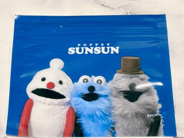ネイビーカラーに、スンスン・ノンノン・スンスンのおじいちゃんのゾンゾンのフォトアートがプリントされています。ぎゅっと寄り添う3人の姿がとてもかわいく、今回のセットの中で個人的に一番テンションが上がったアイテムです。