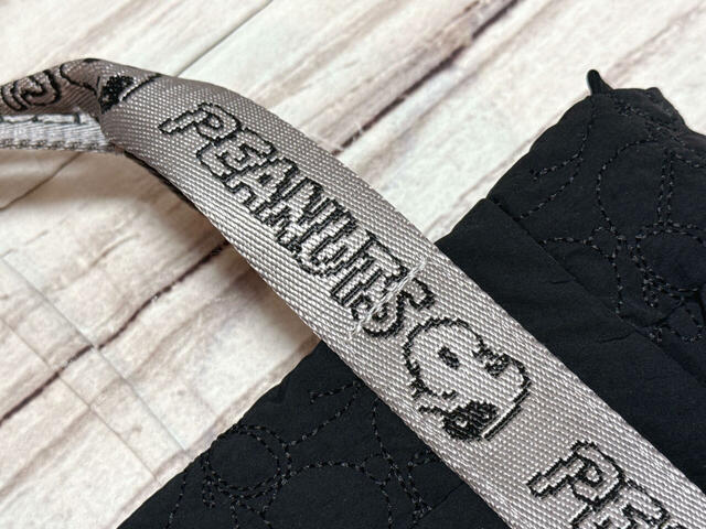 バッグの至るところにスヌーピーのデザインが散りばめられていますが、ブラックの同系色の刺繍とキルティングステッチなので、あくまでさりげない印象。