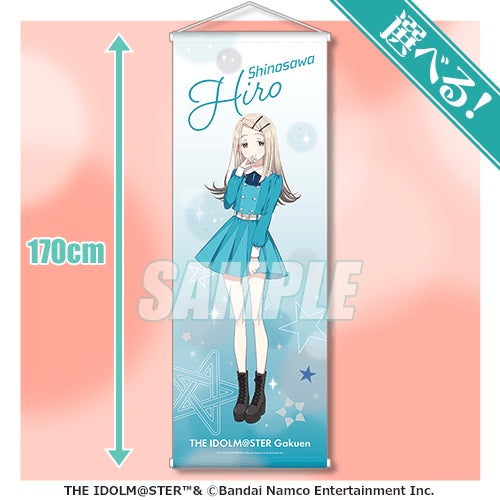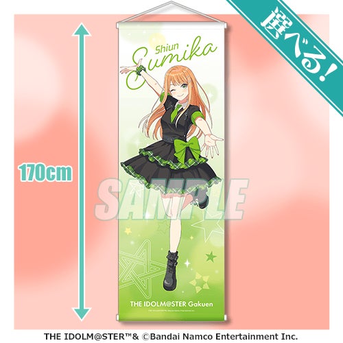 商品は、アイドル衣装に身を包んだ「有村 麻央」「紫雲 清夏」「篠澤 広」の特大タペストリーや、アクリルスタンドのほか、ちびキャラのイラストを使用したアクリルキーホルダー、学園アイドルマスターのアイドル達のミニブロマイドセット、SSRイラストのスクエア缶バッジなど、オリジナルグッズを多数展開しております。