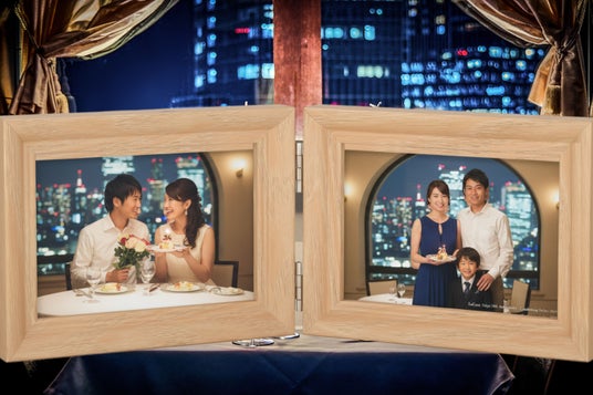 Present 01:Memory Photo(メモリアルフォト・サービス)過去にご来店いただいた際のお写真をご提示ください。当時の思い出の場所にて、スタッフが「今の姿」を撮影いたします。撮影した写真は、20周年特製フォトフレームに入れて贈呈いたします。時を超えて重なる2枚の写真が、お客様の物語を彩ります。