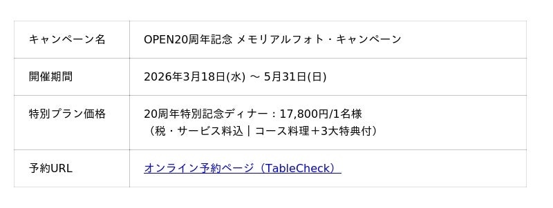 「OPEN20周年記念 メモリアルフォト・キャンペーン」概要