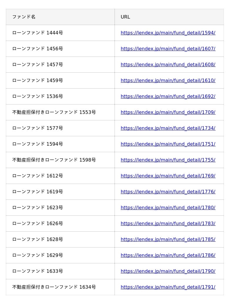 ■2026年2月のレンデックス(LENDEX)の償還ファンド一覧