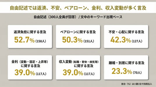 【結果7】自由記述では返済、不安、ペアローン、金利、収入変動が多く言及