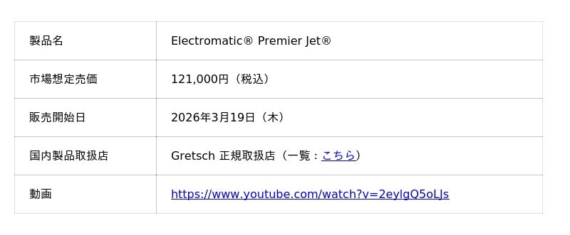 Gretschプロダクト・ヴァイス・プレジデントであるジェイソン・バーンズは、次のようにコメントしています。「ElectromaticおよびStreamlinerコレクションは長年にわたり、多くのプレイヤーにGretschならではのパワーと忠実なサウンドを提供してきました。Gretschは、そのアイコニックなトーンとスタイルで人気を博してきましたが、このElectromatic(R) Premier コレクションは、力強いサウンド、優れた音の分離感、スムーズな演奏性、そしてGretschならではのスタイルを備え、プレイ体験をさらに次のレベルへと引き上げます。」