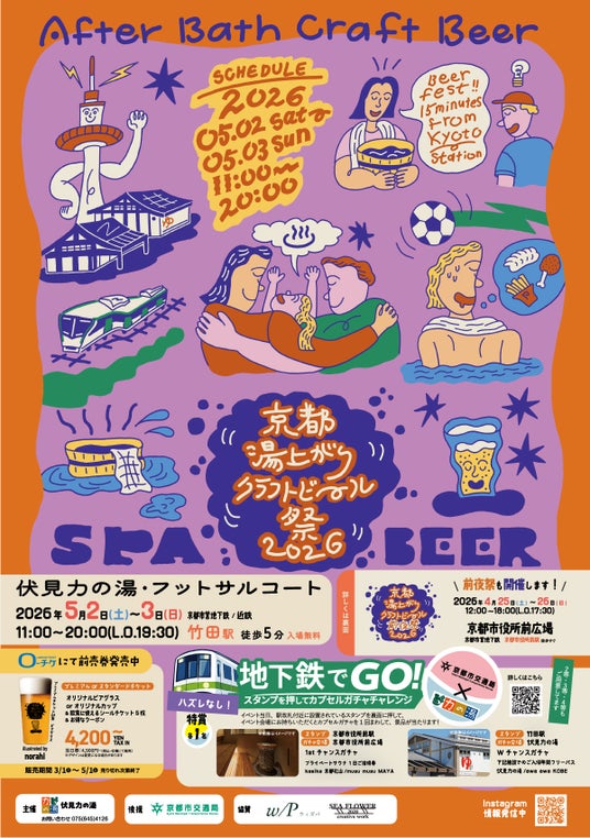 「伏見力の湯」と「天然温泉スパ&サウナ awa awa KOBE」を運営する株式会社メゾネット(本社:京都市中京区)は、主催するクラフトビールイベント「京都湯上がりクラフトビール祭 2026」通称ABC祭(After Bath Craft Beer祭)に先駆けて、2026年4月25日(土)・26日(日)の2日間、京都市役所前広場にて「京都湯上がりクラフトビール前夜祭 2026」を開催します。
