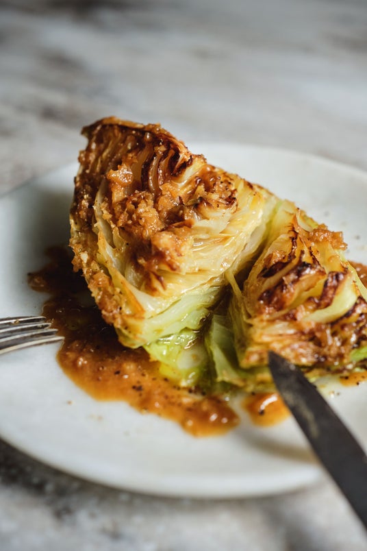 1.キャベツのステーキめんつゆとマスタード、バターを隠し味にした、ごく旨レシピ。いつものキャベツが驚くほど甘くなり、かたまりでもぺろっと食べられます。