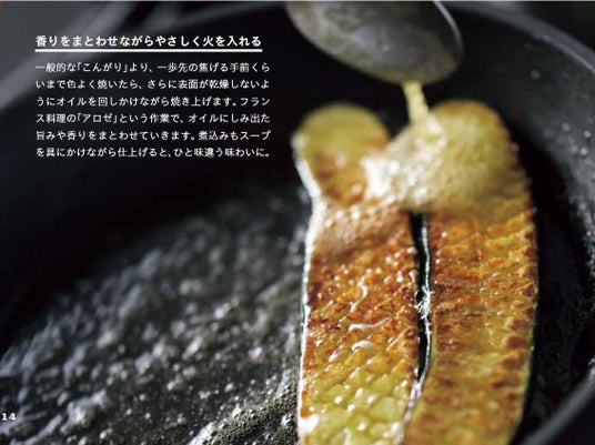 「肉や魚と比べて旨みが少ない野菜を主役にするためには、それを補う作業が必要です」と語るGeorge氏。塩を重ね、火入れを重ね、香りを重ね、二重、三重に補うことで、主役級の旨みが生まれていくーー。そんなプロの技が詰まったレシピを、大きな写真と丁寧な解説とともに紹介します。