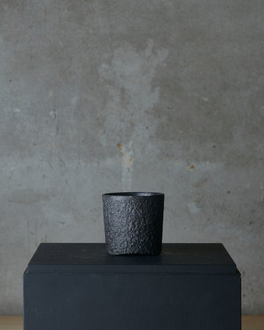 一見、対極にあるような二つの要素が、いとゆふの静謐な空間で溶け合います。本展では、その熱き記憶を宿した火成岩から作られる抹茶碗、ロックグラス、そして酒器を展示販売いたします。