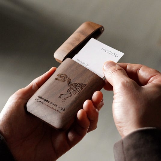 木製デザイン雑貨ブランド「Hacoa(ハコア)」を展開する株式会社Hacoa(本社:福井県鯖江市、代表取締役:市橋人士)は、福井県立恐竜博物館(福井県勝山市)とのコラボレーション第2弾として、同館監修の「フクイラプトル」骨格図を刻印した新ラインナップ4アイテムを、2026年3月19日(木)より発売いたします。