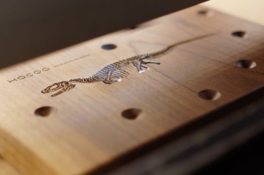福井県で発見された肉食恐竜「フクイラプトル」の骨格をレーザー刻印
