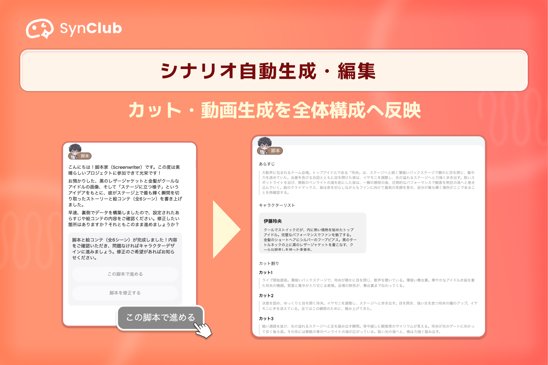 技術的な処理や制作工程はSynClubが支え、ユーザーの発想をもとにコンテンツ制作をサポートすることで、より多くの人が創作活動に参加できる環境の実現を目指します。