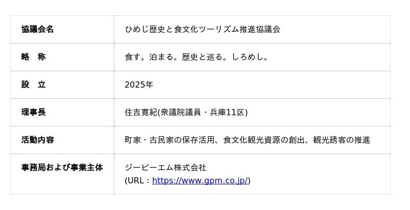 ひめじ歴史と食文化ツーリズム推進協議会概要
