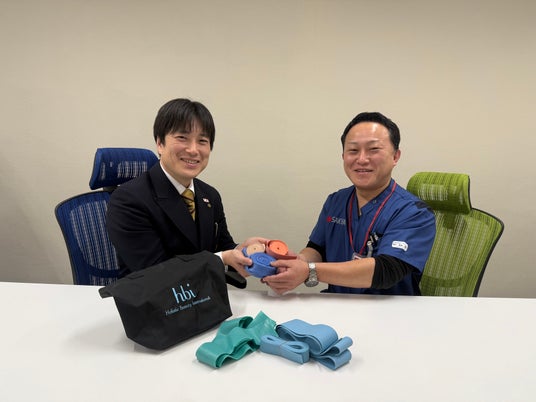 従来、医療現場では劣化しやすく使い捨てとなるゴムバンドが主流でしたが、BCBは強度と耐久性に優れ、若年層から高齢者まで幅広い患者に対応可能なゴムバンドです。今回の寄付は、リハビリの質向上と、病院のコスト負担軽減の両立を目指した取り組みです。