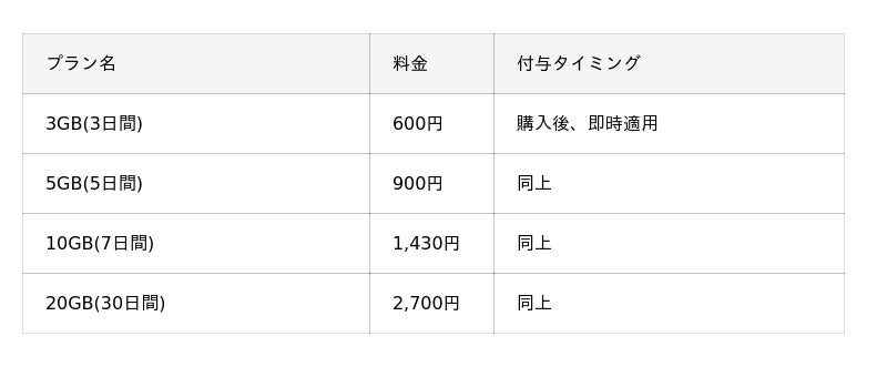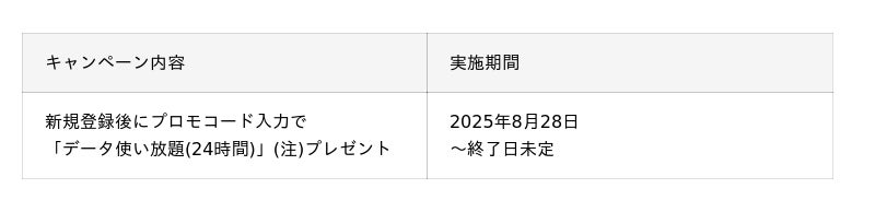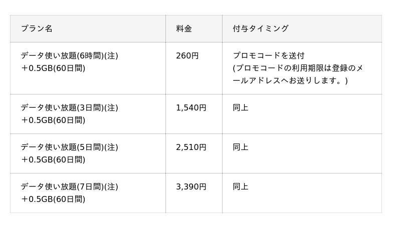 なお、1GB(3日間)、10GB(15日間)、データ使い放題(2時間)、データ使い放題(6時間)、データ使い放題(24時間)、データ使い放題(3日間)については、2026年3月25日午前9時30分をもって提供を終了します。