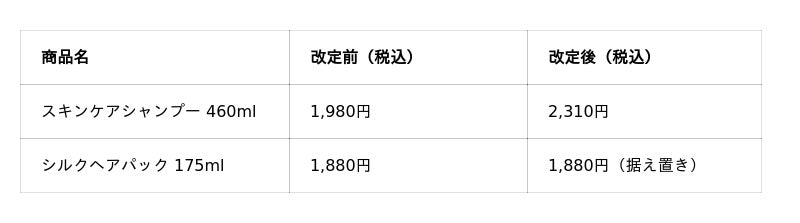 同日より、原材料価格および物流コストの上昇に伴い、一部シャンプー製品の価格を改定いたします。今後も品質を維持しながら、公式オンラインストアでは会員プログラムを通じて、お客様に継続的なメリットを提供してまいります。<価格改定対象商品一覧>
