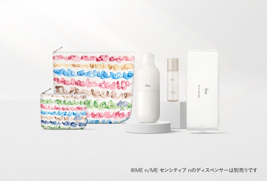 イプサは2026年、創業40周年をむかえ、「Fullness of skin and mind with ART」をテーマに掲げ、感性を刺激するアーティストとのコラボレーションを展開します。第一弾では、福祉を起点に新たな文化を創造し、既成概念や常識の枠を超える挑戦を続ける株式会社ヘラルボニーとのコラボレーションを実施し、「40周年アニバーサリーMEキット」を数量限定で発売します。同キットは、たっぷりとうるおいを与え、すこやかな肌の生まれ変わりをサポートする高機能化粧液MEシリーズ(現品全16種)から自身の肌状態にあった1本が選択可能。さらに、4月に全国発売を控える薬用化粧水「ザ・タイムR アクア e(医薬部外品)」が試せる特製サイズと上質でなめらかな使い心地の「シルクコットン(50枚入)」、ヘラルボニー社契約アーティストmarina氏とコラボレーションしたポーチ2種がセットになっています。同アニバーサリー企画でしか出会えない感性を刺激するコラボポーチは、自身の“遊び心”を解放し、肌だけでなく心まで満たします。ゆらぎやすい春の肌にたっぷりのうるおいと透明感を与え、肌も感性も個性を楽しむ限定スキンケアキットです。