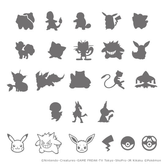 フシギダネ、フシギバナ、ヒトカゲ、リザードン、ゼニガメ、カメックス、ピカチュウ、ピッピ、ロコン、プリン、ニャース、ヤドン、ヤドラン、ゲンガー、コイキング、ギャラドス、ラプラス、