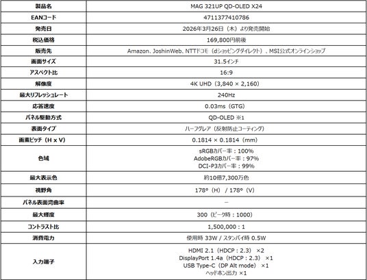 ■MAG 321UP QD-OLED X24製品ページ