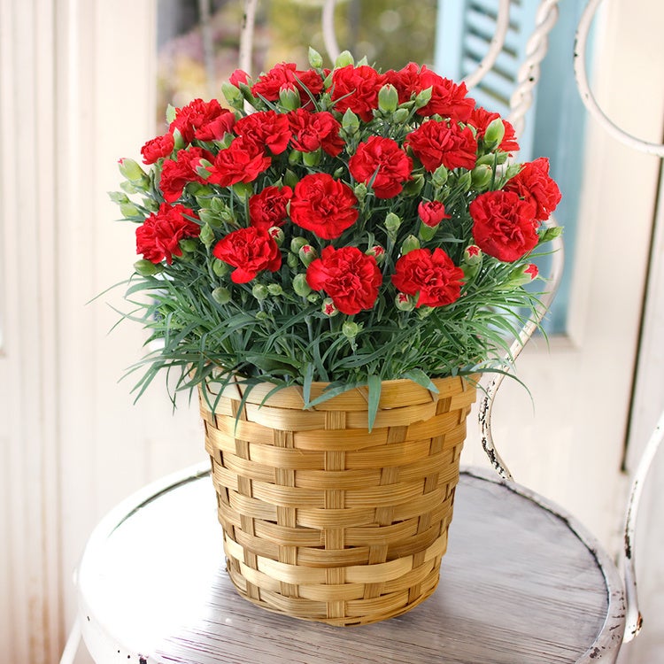 赤いカーネーションの花言葉は「母への愛」。日頃の感謝の気持ちを花とともに贈りましょう。