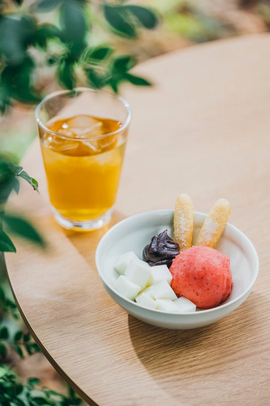 展示棟1階には、杉並区内の銘店の菓子と飲み物を楽しめるカフェが併設されています。