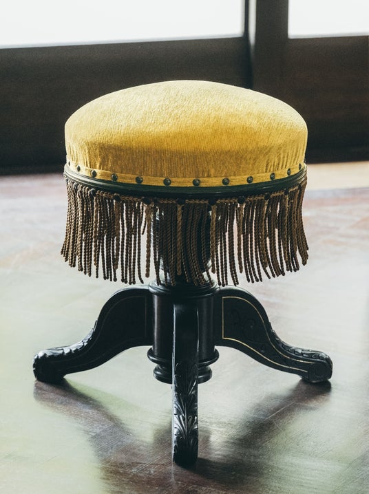 修繕された大田黒公園記念館のピアノスツールこのピアノスツールは、大田黒公園内にある、昭和8(1933)年に建てられた洋館風建築「旧大田黒家住宅洋館」(現:大田黒公園記念館)に残る貴重な家具のひとつです。