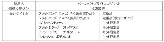 そこで本キットは、定番の美白*ケアに加え、手軽にUVケアができるアイテムや、“ひんやり・すっきり”を感じられる夏の涼(すず)ケアが叶う6アイテムをラインアップしました。